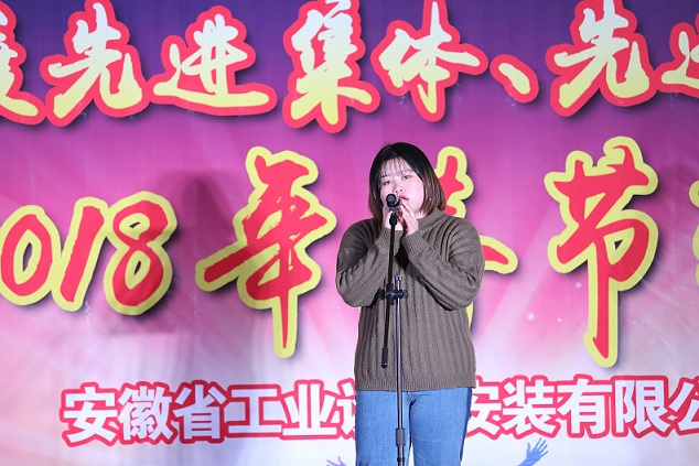 整場聯歡會由音歌快板、情景劇、小品、詩朗誦、舞蹈、才藝表演、女聲獨唱等12個節目組成,均為職工自編自導自演。伴隨著悅耳動聽的音歌快板表演《企業興旺我自豪》,聯歡會正式拉開序幕。情景劇《我驕傲 我是省安人》,反映了安徽安裝人用勤勞和汗水,創造了一個個值得驕傲的碩果;詩朗誦《風雨同行 以心筑夢》,展現了安徽安裝人不斷開拓新市場,實現新突破的壯麗征程;舞蹈《精忠報國》,傳遞了安徽安裝人激昂豪邁,強烈愛國主義的情懷;情景劇《擼起袖子加油干》,表達了安徽安裝人不忘初心,團結一致砥礪奮進的決心;男生合唱《明天會更好》,抒發了全體安徽安裝兒女同心同德,共筑企業燦爛明天的美好心愿,歡快的音符,優美的旋律,振奮的歌詞,贏得了現場觀眾的歡呼喝彩與陣陣掌聲,將現場的氣氛推向高潮。演出過程中還穿插了抽獎和游戲環節。