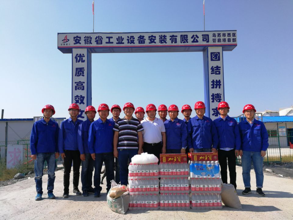 7月21日王軍邦和總會計師張元斌到新疆烏蘇市西區管廊項目部,為奮戰在高溫中的一線職工送去了慰問金和毛巾、防暑藥品等慰問品,王軍邦還就慰問單位的工作進行了調研,要求充分發揮好自身優勢,加快發展步伐,進一步提高新疆市場的影響力和帶動力。