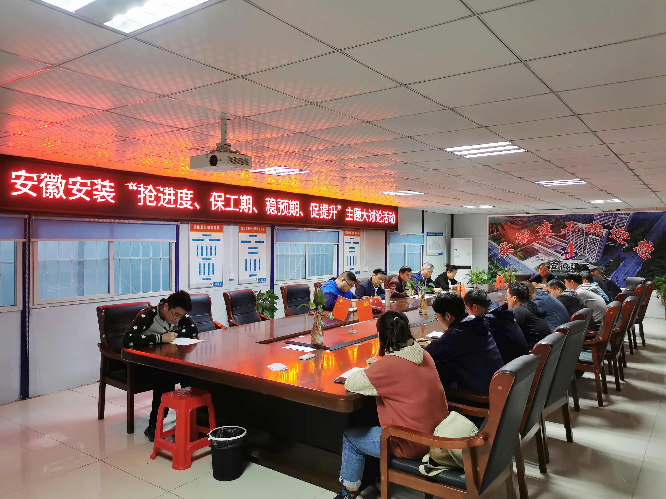 為認(rèn)真貫徹集團(tuán)公司“搶進(jìn)度、保工期、穩(wěn)預(yù)期、促提升”勞動(dòng)競(jìng)賽活動(dòng)精神,10月10日下午,安徽安裝公司圍繞“不能按時(shí)交工為恥辱”的履約意識(shí),在阜陽潁東區(qū)中醫(yī)院項(xiàng)目部會(huì)議室,組織開展“搶進(jìn)度、保工期、穩(wěn)預(yù)期、促提升”主題大討論活動(dòng)。公司副總經(jīng)理高飛,紀(jì)委書記、工會(huì)主席李寬旭,總工程師吳繼成,公司相關(guān)部門負(fù)責(zé)人,房建分公司領(lǐng)導(dǎo)班子成員,項(xiàng)目經(jīng)理、技術(shù)負(fù)責(zé)人等共計(jì)20余人參加會(huì)議,會(huì)議由李寬旭主持。