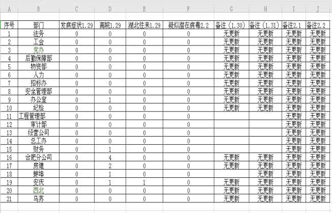 四是日?qǐng)?bào)制度。自1月26日起實(shí)行日?qǐng)?bào)制度,各分公司、各部門認(rèn)真做好登記,確保信息及時(shí)準(zhǔn)確,形成春節(jié)休假期間上下聯(lián)動(dòng)、聯(lián)防聯(lián)控的疫情防控工作格局。