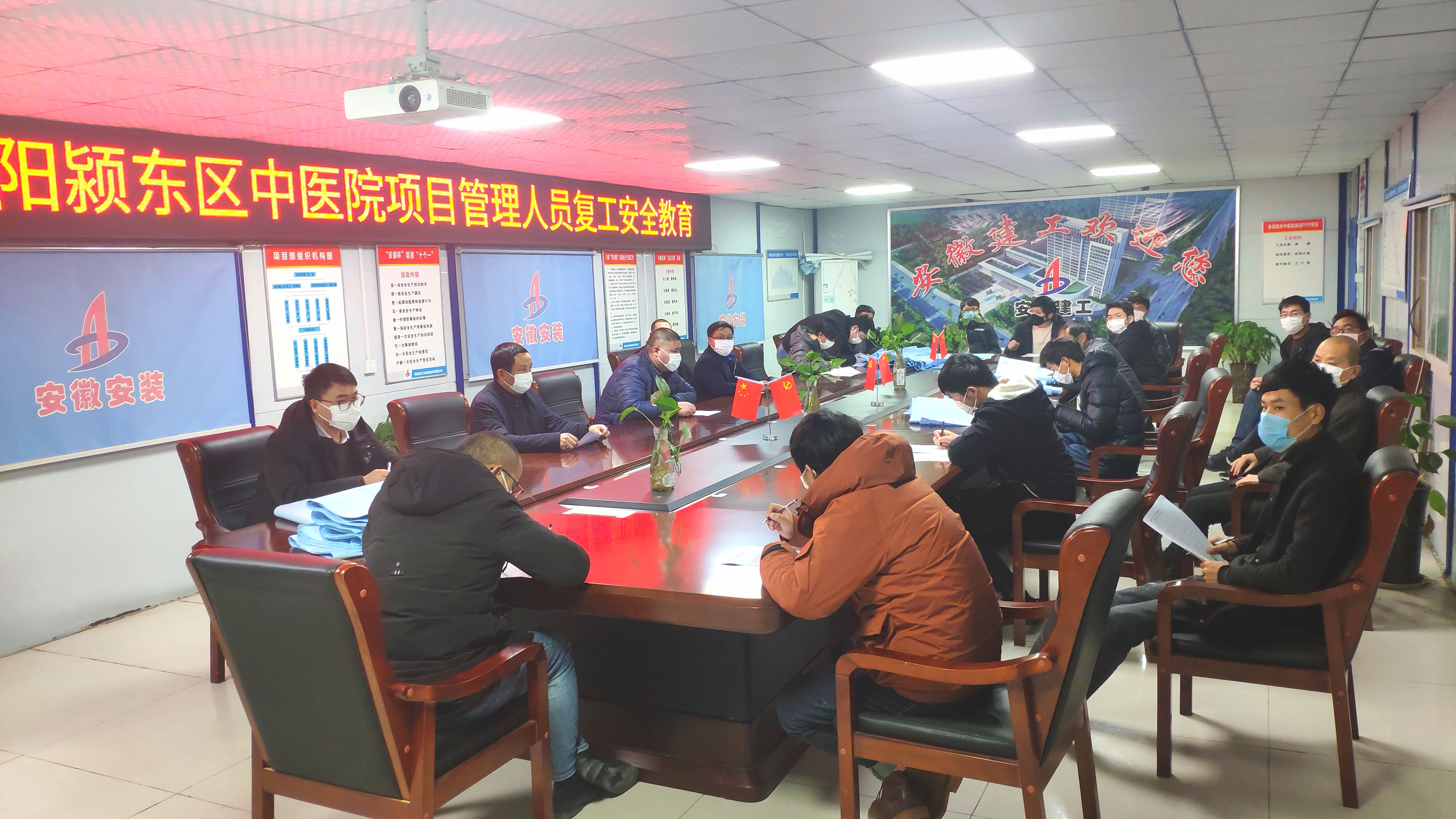 安徽安裝公司重點項目阜陽穎東區中醫院建設PPP項目于2月27日復工。走進項目部可以看到,在嚴格落實各項疫情防控舉措的基礎上,有序恢復生產的腳步正逐步加快。
