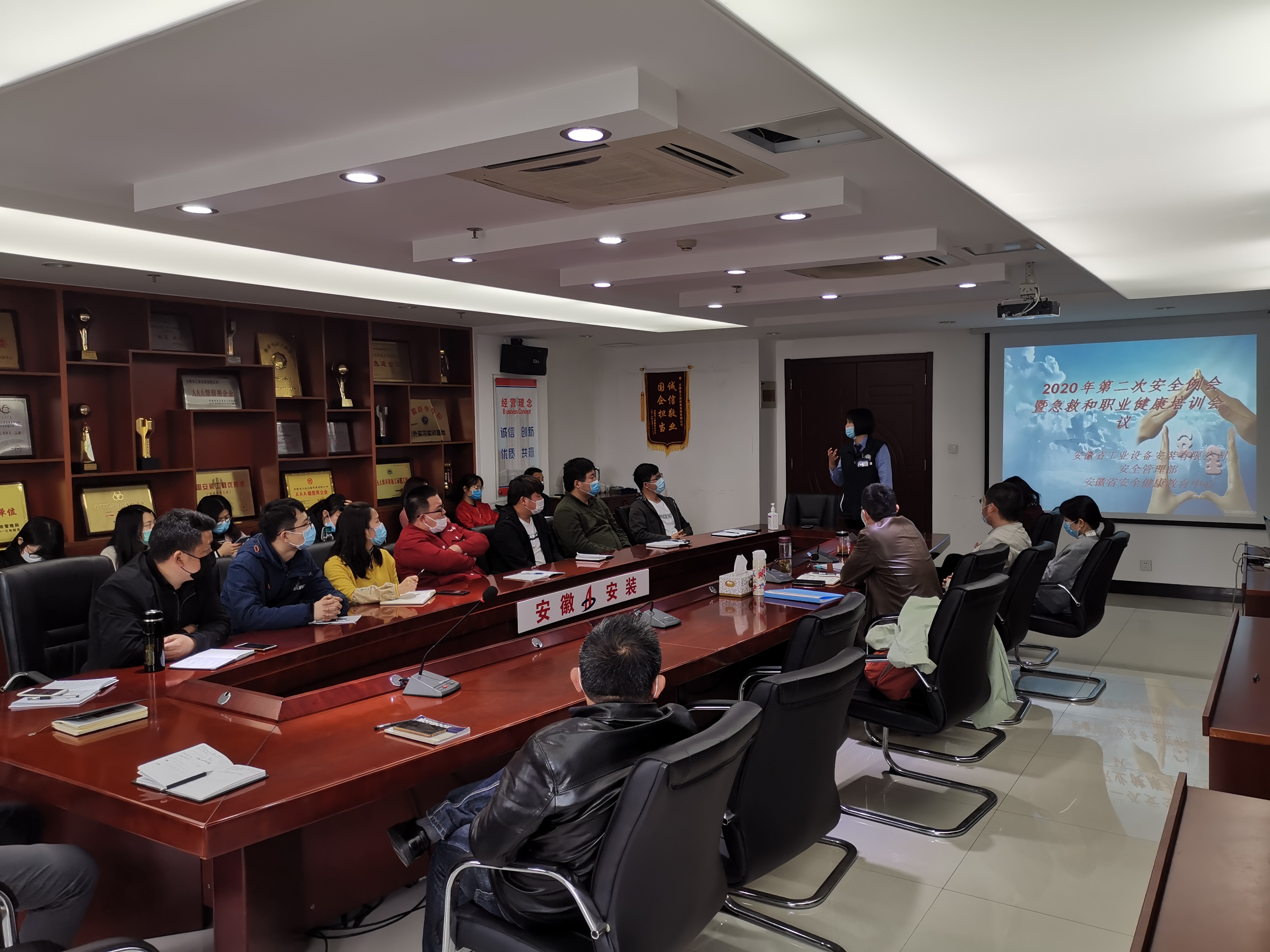 4月20日上午,安徽安裝公司召開2020年第二次安全例會暨急救和職業(yè)健康培訓(xùn)會議。副總經(jīng)理高飛、機關(guān)各部門相關(guān)人員、各分公司分管經(jīng)理及安全科長,各項目部安全員參會。會議由安全管理部副經(jīng)理蔣秀正主持。